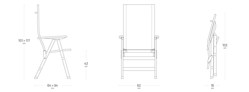 Ergonomischer Sessel mit hoher Rückenlehne, zusammenklappbar und ultraleicht